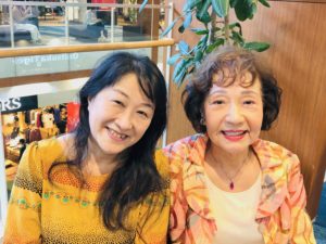 ファッションモデルに挑戦 大きくてきれいなショッピングモールの、おしゃれなスペースで待機中。テレビ番組に出演して、ファッションモデルに挑戦します。 大勢の方に見られる中でしたが、ピカピカ輝いていましたよ! <写真左より>森方いづみ河野修子